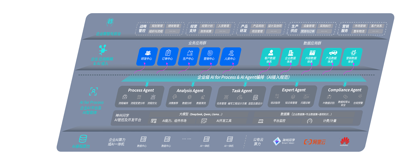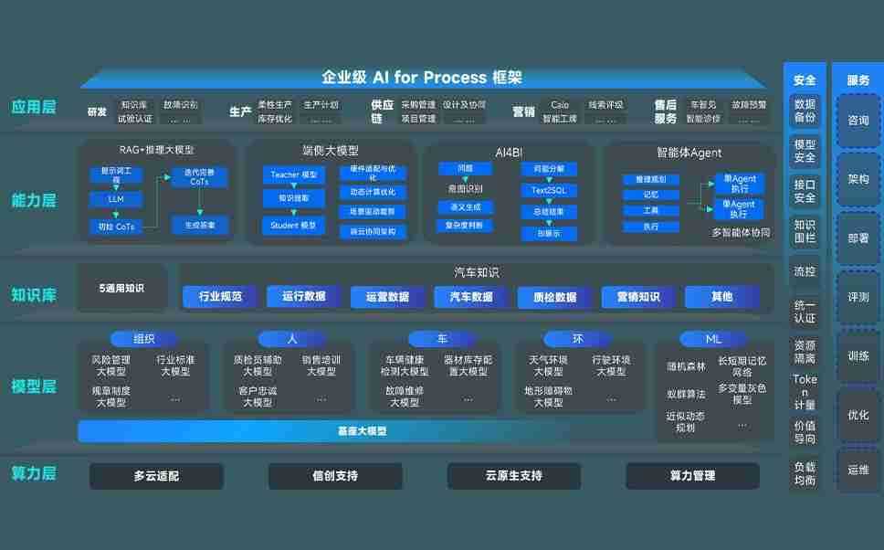 端到端的一站式AI工作空间深度融合了从企业战略规划到日常经营的全流程业务板块,,定向解决车企内部领域多、、、部门多、、、链条长、、、场景碎片化等难题,,,,支持车企快速构建以AI为核心的生产力写作体系,,,,实现任务执行与AI能力的无缝集成与交互