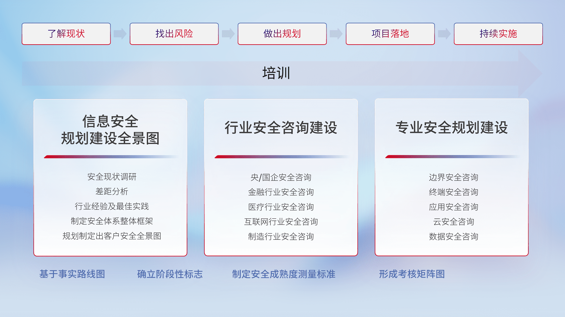 梳理客户信息安全现状调研、、差距分析结果,,,,结合行业先进经验及最佳实践,,制订客户的信息安全管控体系总结架构,,,最终形成一个完整的客户信息安全规划与建设的全景图。。。。